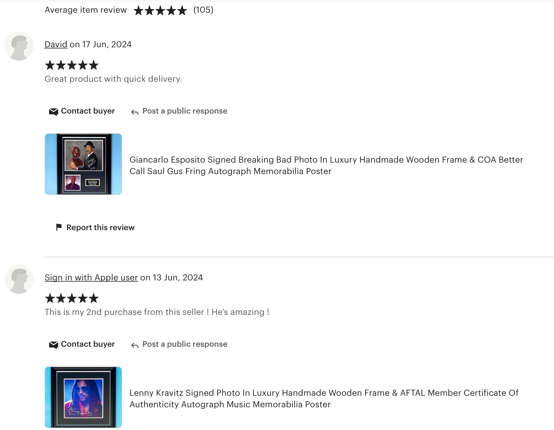 100% Genuine Quality Autographs supplied in Luxury Handmade Wooden Frames & Certificates of Authenticity, for a Full Traceable History, from your Heroes pen, to your wall.